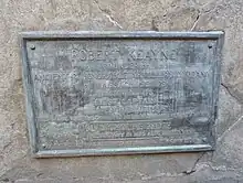 Keayne died in 1656 and is buried in the King's Chapel Burying Ground where a plaque has been affixed to his brick burial vault. Another memorial plaque, placed in 1925, honors Keayne in downtown Boston, on the corner of State and Washington Streets.[12] Each year on the first Monday in June the Ancient and Honorable Artillery Company leads a procession to the gravesite, laying a wreath in Keayne's memory.[13]