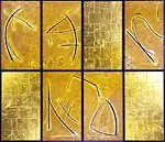 ![]() Robert Kehlmann, "Pythagoras' Lament" (1992), Kehlmann Studio Archive. | ![]() Robert Kehlmann, "Millennium Byōbu" preliminary design (1992), Kehlmann Studio Archive. | ![]() Robert Kehlmann, "Millennium Byōbu" (1994), Lincoln Square Residential Lobby, New York. | ![]() Robert Kehlmann, "Millennium Byōbu II” (2000), Four Seasons Hotel, San Francisco. |