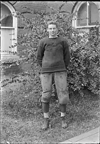 Robert Kent Gooch (September 26, 1893 – May 22, 1982) was an American football player and track athlete. Gooch was a quarterback for the Virginia Cavaliers football team of the University of Virginia. He was named a Rhodes Scholar, but the First World War interrupted his studies.[1] During the war, Gooch served with the American Ambulance Corps with the French forces on the Somme front, and was awarded the Croix de Guerre.[2] He is the namesake of the Robert Kent Gooch Scholarship, for second and third-year college students who have a record of outstanding academic achievement and a record of outstanding service to others.[3] For many years Gooch was a political science professor at UVA, writing several books.[4] He is buried at the University of Virginia Cemetery. A named professorship of political science, the Robert Kent Gooch Professor of Politics, was established in his honor at the university, with Larry Sabato the incumbent as of 2018.