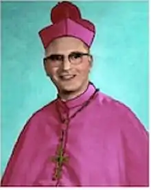 Hodapp attended all four sessions of the Second Vatican Council. In line with the Council's decree on the laity, he strove to activate the laity in the church.[6] He had orchestrated the country's first national gathering of lay ministers, on 9–11 March 1984 bringing together 255 lay ministers and catechists, including 39 Maya. During Hodapp's episcopacy five more groups of religious arrived in Belize. The Society of Our Lady of the Most Holy Trinity (SOLT) came in 1967 and have increased their presence ever since, focusing mainly on the communications apostolates. In 1969, the abbot and procurator of the Benedictine monastery in Subiaco, Arkansas, paid a visit to study the viability of establishing a monastery in Belize. In 1971 they opened Santa Familia Monastery near Santa Elena in the Cayo District. Then in 1975 the first Sisters of Charity of Nazareth came to Belize, focusing on health ministry and adult faith formation. Next the Missionaries of Our Lady of the Light, "Madrecitas," began their ministry in the remote villages of northern Belize.[5] Finally, Guadalupana Sisters from Yucatan served primarily in lay ministry in St. Francis Xavier Parish, Corozal Town, in the 1970s until 1989.[7] In March 1983 Pope John Paul II visited all the countries of Central America, including Belize.[8] Hodapp's episcopacy covered more than 25 years until November 11, 1983, when the Pope accepted his resignation. He died at the age of 79 on October 26, 1989.[9]