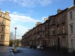 In 1869 his father obtained a senior position as Bank Manager in Glasgow and the family relocated to 8 Lynedoch Place, a then-new, mid-terraced townhouse in the Kelvingrove district.[2] He was educated at Park school and Glasgow High School.