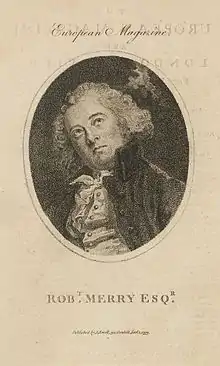 Robert Merry (1755–1798) was an English poet and dilettante. He was born in London. Both his father and grandfather were involved in the governance of the Hudson's Bay Company. His mother was the eldest daughter of Sir John Willes, Lord Chief Justice.