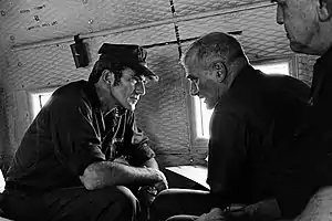 Rear Adm. Salzer meets with CNO Elmo Zumwalt (left) while flying over South Vietnam in May 1971