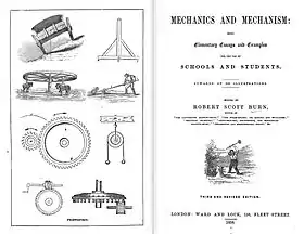 - Robert Scott Burn. eds. Mechanics and mechanism: being elementary essays and examples for the use of schools, students, and artisans. London, Ingram, Cooke, and co., 1853, 1858.