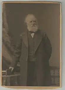Hudson married Mary Bell, a poor farmer girl who made her living selling goats milk to locals, in 1854. They had six children. Mary died in 1860, and in 1868 Hudson married Emily Gilroy in Donnybrook, Dublin. Their Chester home, Bache Hall, was at that time situated in rural surroundings outside the city. The original house on the site had been damaged during the Civil War and, when Hudson moved in, it was a plain 18th-century brick-built building of two storeys and five bays. During the time he lived there, Hudson made improvements including adding an Italianate porch.[4] Hudson died unexpectedly of a heart failure in Scarborough in 1884, leaving a personal estate of just under £300,000, a substantial part of which was given to churches and charities.[6] Emily continued to live in Bache Hall until her death in 1901.[7] He was the grandfather of Margery Greenwood, Viscountess Greenwood and Muriel Ashley, Lady Mount Temple.[8]