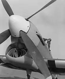 He was given command of the squadron two months later. Now an acting squadron leader, he oversaw his command's conversion from Spitfire IXs to the Hawker Tempest. He led the squadron during its support of the parachute landings at Arnhem, targeting the German flak guns.[2]