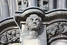 A bust of the poet was sculpted by John Fillans in 1845, again using Morton's drawing as a basis, and this was presented to Paisley Museum in 1873. Elsewhere, a bust of the poet was included in the Wallace Monument’s Hall of Heroes in 1869.[13] And in 1889 his portrait appeared among others in the stained glass windows at Lamlash House commissioned from Stephen Adam.[14]