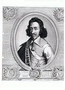 La Vieuville, able to maintain himself in consistent royal favour, was rewarded in 1599 by being made a chevalier of the Ordre du Saint-Esprit (Order of Saint-Esprit).[37] This promotion was extraordinary for a noble who had been of only local importance 30 years previous.[38]