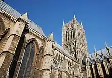 Royal service brought Stretton numerous lucrative preferments. By 1343 he was already rector of Wigston, close to his home village, and in that year became a canon of Chichester Cathedral, being appointed to the prebend of Waltham.[14] On 25 January 1344 the prince had him appointed precentor of St Asaph Cathedral, a post to which was attached the prebend of Faenol[15] Another Welsh appointment came on 28 March 1347 with a canonry at Llandaff Cathedral and the prebend of Caerau[16] At some time he also became a canon of Lincoln Cathedral with the prebend Sanctae Crucis (of Holy Cross) at Spaldwick.[17] He also received appointments at Gnosall in Staffordshire, in London and at Salisbury.[3] By 1354[13] he was rector of Llanbadarn Fawr, Ceredigion, in the Diocese of St David's.