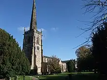 The relationship between the Eyryk family and Great Stretton is problematic. Fletcher claimed that the Eyryk family were "undoubtedly seated at Stretton Magna at an early date, and held land there under Leicester Abbey,"[9] providing a family tree, based on research by Nichols, that pushed the connection back to the reign of Henry III (1216-1272), while the recent Oxford Dictionary of National Biography article asserts that Robert himself held the manor in the 1370s. The relevant Victoria County History volumes provides only limited corroboration, showing the pattern of land holding at Great Stretton as complicated: there was a high degree of subinfeudation by the late 13th century.[10] and in the 14th century, the manor itself was held by the Zouche family of Haryngworth from the Ferrers of Groby. The Heyrick family were substantial free tenants and the most important residents,[8] but not apparently lords of the manor. Their presence in the village was first attested in 1274, with one Richard Heirick, a cleric. In 1327 and 1332 they paid about a third of the village's total tax bill, giving an indication of their relative importance. Bishop Robert inherited some of the family's land at Great Stretton in later life.