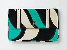 Camerino won a Neiman Marcus Fashion Award in 1956 in recognition of the success and influence of her handbags. Her cut-velvet bags featured brass hardware made by Venetian craftsmen, and were carried by celebrities such as Grace Kelly, Farrah Fawcett, and Elizabeth Taylor.[3] In addition to the handbags, which often featured trompe-l'œil buckles and flaps, Roberta di Camerino also sold coats, dresses, and other clothing.[1] Some of her fabrics were woven on antique looms, which helped support local industry in post-war Italy.[1] The first Roberta di Camerino fashion show, held in Venice in 1949, was remembered for its theatricality.[3]
