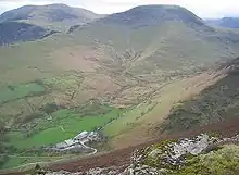 Keskadale forms the north western boundary of Robinson and is also the route of Newlands Pass, crossing the North Western Fells from Braithwaite to Buttermere. Its summit at Newlands Hause (1,092 feet; 333 m) lies beneath the northern edge of Buttermere Moss, from which the waterfall of Moss Force drops within easy reach of the road.