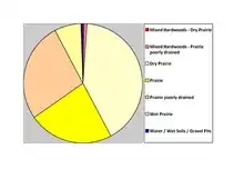 One of Minnesota's nicknames is "Land of 10,000 Lakes", and it is speckled with bodies of water large and small. But four of the state's counties do not contain a natural lake; Rock County is one of them.[9] Rock County did host a manmade lake from 1938 until 2014: a WPA work project constructed a small dam (the "Lower Dam") on Blue Mounds Creek in 1938, creating a small lake in Blue Mounds State Park. This continued until June 2014, when the dam was damaged by rain and floodwaters, allowing the pond to drain.[10] In June 2016 the Minnesota Department of Natural Resources announced its decision not to rebuild the dam.[11]