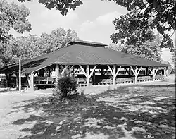 Rock Springs Camp Meeting Ground is a historic Methodist camp meeting ground located near Denver, Lincoln County, North Carolina. The arbor was built in 1832, and is a rectangular open structure with a deep hipped roof and ventilation cap at the apex. It has a raised platform with a pine pulpit and seating for 1,000. The property has 288 numbered wooden "tents" placed in two and a partial third concentric ring around the arbor. Tent No. 1 is believed to date to the early-1830s. Rock Springs Camp Meeting Ground is the earliest camp meeting organization in North Carolina.[3]