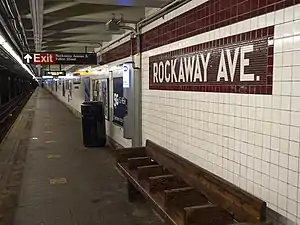 The Rockaway Avenue station is a local station on the IND Fulton Street Line of the New York City Subway. Located at the intersection of Rockaway Avenue and Fulton Street in Brooklyn, it is served by the C train at all times except nights, when the A train takes over service.