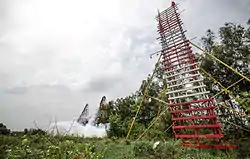 Sunday competition moves on to the launching of Bangfai, judged, in various categories, for apparent height and distance travelled, with extra points for exceptionally beautiful vapour trails Those whose rockets misfire are either covered with mud, or thrown into a mud puddle (that also serves a safety function, as immediate application of cooling mud can reduce severity of burns). While popular and entertaining, the festival is also dangerous, with participants and spectators alike occasionally being injured or even killed. On 9 May 1999, a Lan 120 kg rocket exploded 50 meters above ground, just two seconds after launch, killing four persons and wounding 11.[15]