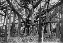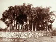 The Rockhampton Botanic Gardens was gazetted as a public garden in 1869. Prior to this, from 1861 most of the land that was to be utilised for the gardens was a Native Police barracks.[2] Between 1868 and 1872, three sites were gazetted as botanic gardens for Rockhampton. The influence of Anthelme Thozet, a local botanist and collector, is thought to have prevailed in the selection of the Spencer Street site. The proximity to a constant water supply, in the adjacent Murray Lagoon, and striking vistas from the western slopes of the Athelstane Range were primary considerations for a successful botanic gardens site.[1]