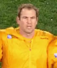 Rocky Elsom (born 14 February 1983) is a former Australian rugby union player. He played the positions of flanker and number eight. He was selected for 75 caps for Australia. He is the most capped Australian blindside flanker. Elsom was the 76th Australian test captain, having replaced Stirling Mortlock in 2009 for two years. He played for the Wallabies from 2005 until 2011. Elsom played professionally for New South Wales, Brumbies and Leinster.