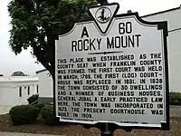 - ↑ "Geographic Identifiers: 2010 Demographic Profile Data (G001): Rocky Mount town, Virginia". U.S. Census Bureau, American Factfinder. Retrieved October 20, 2016.