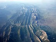 The Rocky Mountain Front forms the eastern boundary of a triangular area of volcanic activity centered on western Colorado.[29] Several sandstone horizons underlie the Colorado Rocky Mountain Front as well, and decline steeply to the east.[30]