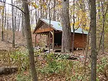The original shelter was built in 1940 by the Civilian Conservation Corps (CCC) and completed in 1941 by the Potomac Appalachian Trail Club[2] (PATC) which currently maintains 240 miles of the Appalachian Trail from Pennsylvania to Virginia and an additional 1,000 miles of trails elsewhere in the region. The shelter is one of 15 remaining shelters built by the CCC on the Appalachian Trail, and of even fewer made from logs rather than stone. After falling into disrepair, the PATC considered tearing it down and building a larger one. However, noting its historical significance, the shelter was repaired in 2008.