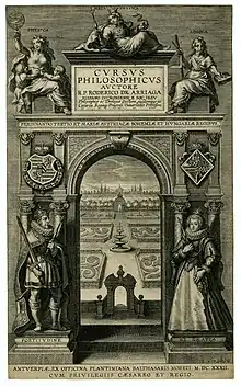 Arriaga displays an original approach to natural philosophy, interest in the critical scientific spirit of the time, and familiarity with the new experimental science, quite unusual among the scholastics.[17] He gave up most of the opinions of Scholastic authorities in point of natural philosophy, such as the composition of the continuum, rarefaction, etc. and held many innovative views.[18] Regarding the structure of the universe, he accepted the fluid nature of planetary space, though he rejected the arguments from astronomical observations.[19] He argued that arguments supporting the incorruptibility of the celestial bodies were at best specious.[20] While the Revisers General attempted to enforce uniformity within the Society, Arriaga called for greater liberty in philosophy. In the preface of the first edition of his Cursus Philosophicus (1632) he argued explicitly in favour of new opinions. Was there not just as much genius in Thomas, Cajetan, Molina, and Suàrez as in the ancients?[21] Since we have studied much since the ancients, he wondered, "why then is it not proper for us to deduce new conclusions?"[22] Antiquity was no guarantee of the truth of any opinion, for in his view it was truly amazing how many ancient opinions had virtually no foundation but were based simply on the badly understood authority of Aristotle or some other philosopher.[23]