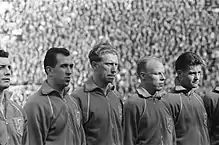 While still playing for Donar in the third tier of the Dutch league system, Wiersma debuted in the Netherlands national team. On 24 October 1954, he appeared in an exhibition match against Belgium. Since his first cap, Wiersma set a 35-match streak for not missing a single Netherlands match. This series of matches in a row (starting from the player’s first cap) is a Dutch record until this day. In the match that Wiersma missed and thus ended his record, the Netherlands lost to West Germany 0-7. He mostly appeared in friendly matches; Wiersma played four 1958 FIFA World Cup qualification matches and three 1962 FIFA World Cup qualification matches.[1] Wiersma's most notorious qualification match was an away fixture against Austria. The Dutch team lost 3-2 and Wiersma was stretchered off the field: after a hard tackle by Robert Dienst, he landed on the running track and ended up with an bloody face and a concussion.[7][9][10] In 15 of his matches, Wiersma served as captain of the Dutch side.[5][11] His national team career ended after a row with coach Elek Schwartz, who benched Wiersma after a 4-1 loss against Denmark in 1962. Schwartz blamed Wiersma’s bad performance on a disproportionate attention to his engineering study; Wiersma simply condemned his teammates’ mentality. The Denmark match later turned out to be his last for The Netherlands.[7]