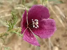 Roemeria is a genus of flowering plants in the family Papaveraceae, native to Macaronesia, Europe, the Mediterranean, North Africa, the Caucasus, the Middle East, the Arabian Peninsula, Central Asia, the western Himalayas, Pakistan, Xinjiang, and Mongolia.[1] A 2006 molecular analysis revised the taxonomy of Papaver, elevating Roemeria to the genus level, and including the species formerly in Papaver sect. Argemonidium.[2]