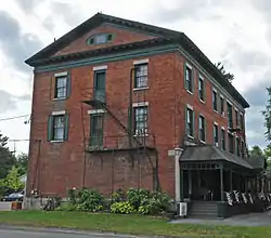 At the cost of $40,000, Minier situated the building on family land purchased from Nicholas Van Rensselaer[3] (Military Lot #87 of the Central New York Military Tract).[4] The Central Exchange Hotel received its name because it was on the road between Ithaca and Auburn, and stagecoaches would stop there to exchange horses.