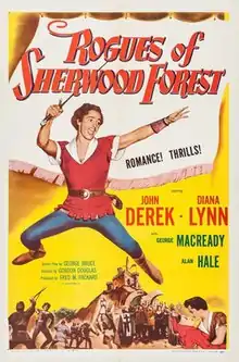 Rogues of Sherwood Forest is a 1950 Technicolor adventure film from Columbia Pictures, directed by Gordon Douglas, and starring John Derek as Robin, the Earl of Huntingdon, the son of Robin Hood, Diana Lynn as Lady Marianne, and Alan Hale, Sr. in his third Robin Hood film role as Little John during a 28-year period; he'd played the part opposite Douglas Fairbanks in 1922 and Errol Flynn in 1938, one of the longest periods over which a film actor played the same major character. It was also Hale's final film before his death. Rogues of Sherwood Forest was written by George Bruce and Ralph Gilbert Bettison. The supporting cast features George Macready as King John, Billy House as Friar Tuck and John Dehner in an early appearance as Sir Baldric, billed fourteenth in the cast list.