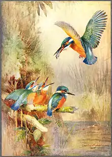 Roland Green was born in Rainham, Kent, the son of a taxidermist, who trained him in the skinning, stuffing and setting up birds, thereby instilling an extensive knowledge of anatomy and plumage. He showed an early aptitude for drawing and painting birds. Educated in Rochester and at the Regent Street Polytechnic, he was a skilled bird and mammal painter, holding annual exhibitions of his paintings and etchings. The subjects of his etchings were snipe, Canada geese, mallard and kingfishers. He also gave lectures on bird watching and the drawing of birds, with an emphasis on birds in flight. He spent a great deal of time in the reedbeds, creating the mistaken impression of being unsociable, but his talks to pupils at various schools dispelled that notion.[2] Green was commissioned by Lord Desborough of Hickling Estate in Norfolk to paint a frieze at Whiteslea Lodge, showing the birds of Hickling Broad.[3]