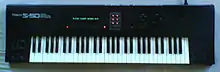 The Roland S-50 is a 61-key 12-bit sampler keyboard produced by the Roland Corporation in 1986. It featured a 3.5-inch DSDD floppy disk drive and had external CRT monitor support to facilitate editing of samples. It could hold up to 32 samples. A rack-mounted version was also available, which featured expanded memory.[2]