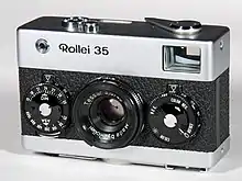 The Rollei 35 is a 35mm miniature viewfinder camera built by Rollei. The original Rollei 35, when introduced at photokina in 1966, was the smallest existing 135 film camera. The Rollei 35 series remains one of the smallest 35 mm cameras after the Minox 35 and Minolta TC-1. In 30 years, about 2 million Rollei 35 series cameras were manufactured. The Rollei 35 was manufactured by DHW Fototechnik up to 2015, the successor of Franke & Heidecke as small-batch production.[1] The last version is the Rollei 35 Classic, an updated Rollei 35 SE.