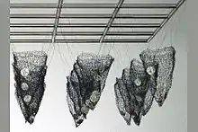 Hanging Nets, Stainless steel, knitted wire, porcelain 100 x 100 x 38cm
