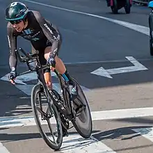 When he arrived at the start of the Tour de France, Bardet had a troubled first week with mechanicals and punctures.[21] He lost time on multiple occasions during the first week and was almost two minutes behind when they started the 10th stage. On stage 12 to Alpe d'Huez, Bardet attacked and rode away from the other contenders. He was later joined by Chris Froome, Geraint Thomas and Tom Dumoulin, but decided to test the contenders with numerous accelerations. He ended the stage in 3rd place and rose to 6th place in the general classification.[22] With Bardet only being 8th in the general classification before stage 19, he and several other contenders attacked on the Col du Tourmalet with almost 100 kilometres (62 miles) to the finish line.[23] Despite being caught on the last climb, Bardet finished third in the sprint to the finish line. He moved up to a final placing of sixth overall after the penultimate stage, an individual time trial – his fifth consecutive top-ten finish at the race.