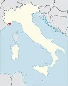 The Diocese of Albenga–Imperia (Latin: Dioecesis Albinganensis–Imperiae) is a Latin diocese of the Catholic Church in Liguria, northern Italy; the traditional name of the Diocese of Albenga was changed by decree of the Congregation of Bishops in the Roman Curia, with the approval of Pope Paul VI, on 1 December 1973.[1] It is a suffragan of the Archdiocese of Genoa.[2][3]