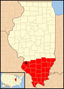 When the Vatican erected the Diocese of Bardstown in Kentucky in 1808, it gained jurisdiction over the Illinois area. The earliest parishes in the region were the Irish St. Patrick's in Ruma in 1818, the French St. Francis in St. Francisville in 1818 and the English St. Augustine of Canterbury in Hecker in 1824.[9] In 1827, the Diocese of St. Louis assumed jurisdiction over the western half of the new state of Illinois. In 1834, the Vatican erected the Diocese of Vincennes, which included eastern Illinois.[10]