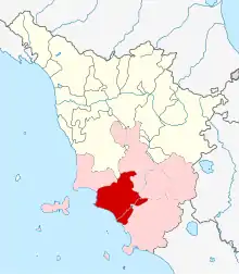 The 50 parishes of the diocese all fall within the province of Grosseto, in Tuscany. They are divided into four pastoral areas (urban, sub-urban, coastal and hills).[72][73]