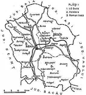 Administratively, in 1930, Roman County was divided into two districts (plăși):[1]
