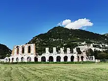 The Teatro Romano or Roman Theater are the ruins of a 1st-century ancient Roman theater of the former town of Iguvium (now Gubbio); the located in a grassy park just south of the highway SR298 as it passes the center of the historic town in the region of Umbria, Italy.