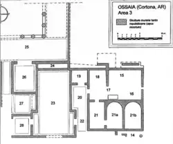 - ↑ by Fracchia H et al., La Villa di Ossaia. Il Territorio di Cortona in Età Romana. 2015 ISBN 978-8871405858