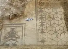 Black and white mosaics of the 1st c. BC to 1st c. AD were found underneath the post Constantinian mosaics visible today from after 300 AD. The importance of this area in the early phase of the villa is confirmed by the terracotta relief plaques, the Campana reliefs.[6] Such reliefs were usually employed in public buildings for sacred or civic functions, and also in the most prestigious private buildings. A group of long rooms alternated with basins and with the terracotta relief plaques to constitute the public entertainment area.