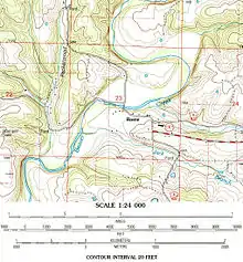 Section of the USGS Brownbranch, MO 7.5 minute topographic showing location w/scale