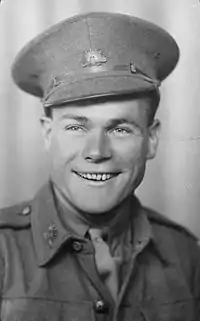 He joined the army soon after the 1940 VFL season, like many other footballers from the Melbourne Football Club.[5] Serving in the military campaign in North Africa, he was killed in action at Tobruk in 1941, the first VFL footballer to die in the conflict.[4] He was buried at the Tobruk War Cemetery in Libya, alongside other Commonwealth servicemen.[6]