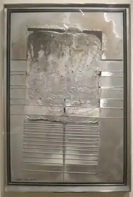 His works often explored extreme linear perspective and multiple framings, as in Galactic Sculpture #2.[2] The Auckland Art Gallery, the Boston Public Library, the Fogg Museum, the Hawaii State Art Museum, the Hessel Museum of Art, the Honolulu Museum of Art, the Library of Congress, the Metropolitan Museum of Art, the Museum of Modern Art (New York), and the Yale University Art Gallery are among the public collections holding work by Ron Kowalke.[3][4]