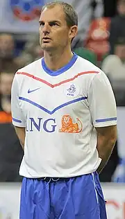 Ronaldus de Boer (Dutch pronunciation: [ˈroːnɑldə ˈbuːr];[2] born 15 May 1970) is a Dutch former professional footballer who played as a midfielder. He played for the Netherlands national team as well as a host of professional clubs in Europe. He is the twin brother of Frank de Boer. The majority of his success as a football player was with Ajax. He works as the Ajax A1 assistant manager.