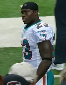 Brown entered the 2005 NFL Draft and was drafted with the second overall pick of the first round by the Miami Dolphins.[4] Fellow Auburn University halfback Carnell Williams was also in the draft and was selected with the fifth pick in the first round by the Tampa Bay Buccaneers. Brown held out of training camp due to a contract dispute and as a result was not successful running the ball in the first two weeks of the season as he rushed for only 93 yards on 34 carries (2.7 avg.) and no touchdowns. However, he got on track in Week 3 as he rushed for 132 yards on 23 carries (5.7 avg.) and his first career touchdown. He followed this up with a successful Week 4 performance rushing for 97 yards on 17 carries (5.7 avg.). But during Week 5, he had to again share rushing duties with another premier running back, this time Ricky Williams who was returning from a four-game suspension. Brown ended up having only about forty more rushes than Williams during the 2005 season, and was well on pace for a 1,000 yard campaign if it wasn't for them sharing the football. Brown ended up with 207 rushes for 907 yards (4.4 avg.) and 4 touchdowns while having 32 receptions for 232 yards and a touchdown.