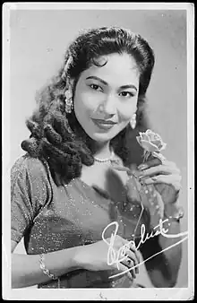 Roosilawaty (April 15, 1936 – February 25, 2009) was an Indonesian actress and dancer. Born with the name Surayi Pendidikan, Roosilawaty adopted her stage name when she started her career as a singer and dancer. She starred in her first lead role in the film Tjatut in 1956 and continued to appear in Indonesian films until 1963. Amongst her films are Tiga Dara (Three Virgins) and Lahirnja Gatotkatja (Birth of Gatotkatja), a latter inspired by traditional Indonesian wayang. She retired from acting and, after a period as a florist, subsequently founded Les Sphinx Promotion, an agency for artistic talent, in 1972.