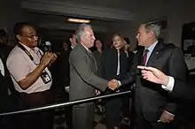 Former U.S. President George W. Bush working the rope line at the Department of the Interior in 2000