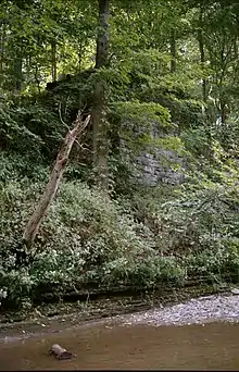 The stonework at the northern side of the creek where Rorig Bridge once stood